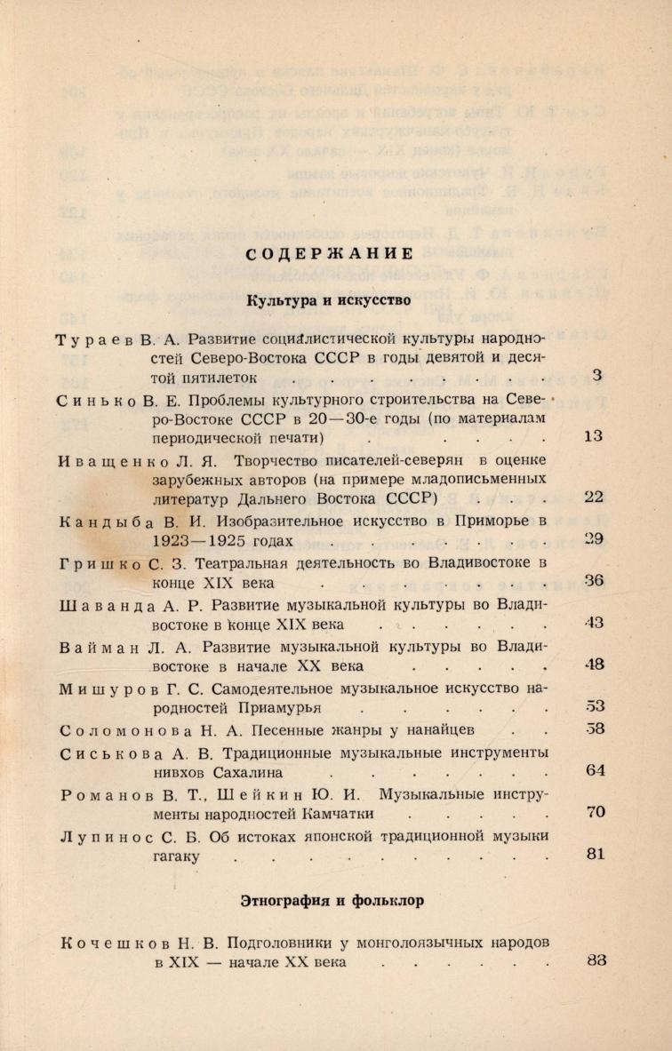 Культура народов Дальнего Востока : традиции и современность : [сборник статей] / Академия наук СССР, Дальневосточный научный центр, Институт истории, археологии и этнографии народов Дальнего Востока, Министерство культуры РСФСР, Дальневосточный педагогический институт искусств ; [редколлегия: Н. К. Старкова (ответственный редактор) и др.]. - Владивосток : ДВНЦ АН СССР, 1984. - 202, [4] с.