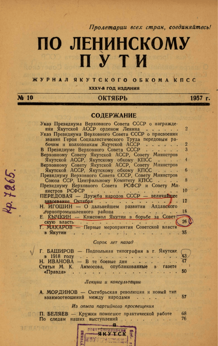 По Ленинскому пути : журнал Обкома ВКП(б) / . - Якутск : , 1922-1964.